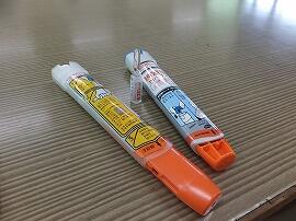 学校医の吉野先生をお招きして,食物アレルギー等から起こるアナフィラキシーショック時の緊急対応の仕方について研修を行いました。