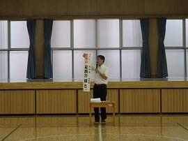 いじめの撲滅を目指して,児童会主催「いじめゼロ集会」が行われました。各クラスで考えた,いじめをなくすためのキャッチフレーズを披露しあいました。
