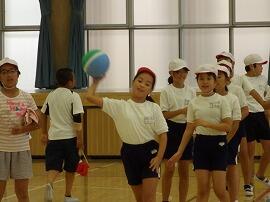 1・2年生は,4mの距離でドッジボールを投げ合います。