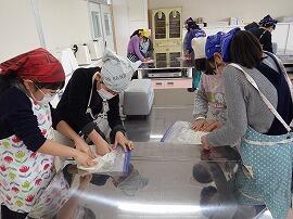 ごはんが手に付かないように,十分に水で手を濡らし,形を作っていきます。