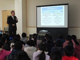 昭和大学医学部医学教室推進室の高宮有介先生をお招きして,「いのちの授業」を行いました。高宮先生は,緩和ケアの医師として,多くのがん患者に向き合い,人の死から,命や生きることを深く考えてきた先生です。数多くの体験から,子どもたちに生きることの意味や命の大切さについてお話しされました。