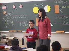 2年生の算数「1を分けて」の単元で,日常生活の中で2つに分ける経験を算数の世界につなげる授業が行われました。