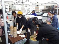 【クリームスープ作り】 【炊き出し会場には長い列ができて