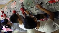 「暑さに対応した住まい方の工夫」について、冬の住居と比較しながら考えました。強い日差しをやわらげるよしずやすだれ、グリーンカーテン、敷物や空調など、様々な工夫について発表していました。