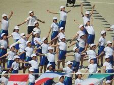 開会式のあと,ラジオ体操,応援合戦,3年生の徒競走と続きます。子どもたちは気温が上がる中,元気に頑張っています。係の児童も役割をしっかり果たしています。子どもたちがみんなで運動会を盛り上げています。