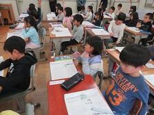 3年生は,「昔の小学校のお話を聞こう」と題して,ゲストティーチャーを招いての授業に臨んでいます。校舎の様子,学校生活,学習,給食,運動会や文化祭などの行事・・・各自がテーマを選んで話を聞きます。今の学校との違いに驚きながら,子どもたちは,大切なことを聞き漏らすまいと,熱心にメモをとっています。自分で選んだテーマなので,積極的に質問する様子も見られます。