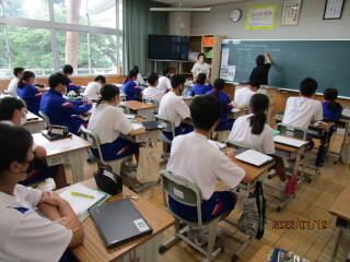 続いて「校長先生」「生徒指導主事 大木先生」「学習指導主任 三浦先生」から4月~7月の頑張りへの労いの言葉、夏休みに向けての言葉、生活面の注意、夏休み中の学習についてなどの話がありました。
