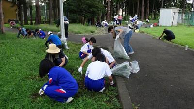 8月26日(土)、早朝にもかかわらず、約600名が参加し、4年ぶりにPTA親子除草作業が行われました。