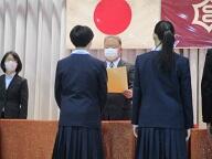 同窓会入会式終了後、令和2年度の卒業に関しての表彰式が行われました。表彰式には、2学年も参加して行われました。