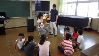 今回は貢清世会より,4名の津軽三味線の講師をお迎えし,生で演奏を聴いたり,実際に一人ずつ音を出す体験をさせていただいたりしました。子どもたちは「弦を強く押さえるのが難しい。」と苦労しながらも,素晴らしい三味線の魅力に触れ,楽しんで活動していました。