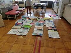 休み時間 雨なので誰も外には出ていません。保健室では,皆さんが休み中に描いてきてくれた「むし歯予防」のポスターを保健室の先生が掲示する準備を進めています。たくさんの作品を本当にありがとう。皆さんの作品を見るのが楽しみです。
