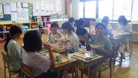 子供たちの学力向上や教師の指導力向上のため,学校では年に数回,教育委員会に要請し,指導の先生を派遣してもらい,授業研究会を行っています。今回は今年度1回目の要請訪問日でした。4年生の総合的な学習の時間についての研究です。篠井の町にある施設について紹介しようという内容の学習です。子供たちは自分たちが調べる施設について熱心に意見交換をしていました。