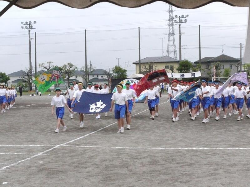 24日(金)、快晴の中体育祭全体練習を行いました。中学校では、体育祭に多くの時間をかけることができないので、全体に係ることに絞って練習をしました。生徒もきびきび行動できたので、計画通り進めることができました。来週は予行・本番になります。体調管理に気を付けるとともに、飲み物・帽子(日差しをよけられて、汚れてもいいもの)タオルを忘れないようにご家庭でも声をかけてください。