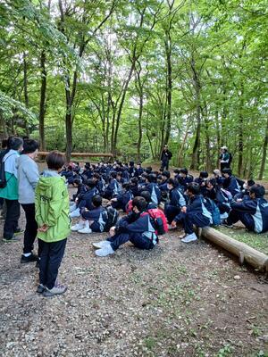 今日から3日間,1年生は冒険活動教室です。出発式も終えて,これから冒険活動センターへ。楽しい思い出をたくさん作ってきます。