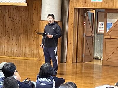 本日,学年朝会を実施しました。1年生は冒険活動教室のスローガン・表紙絵の表彰,2年生は学級委員長・生徒会専門委員会副委員長のあいさつ,3年生は京都・奈良に関するクイズをネプリーグ形式で行いました。
