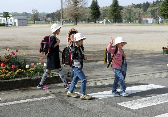 下校時刻には,生憎の雨になってしまいましたが,今年度2回目の全校下校が行われました。今日は田原駐在所の所長さんが来校され,交通安全や「いかのおすし」について丁寧にお話をしてくださいました。