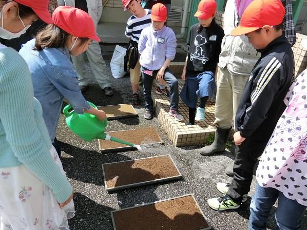 エコ・ワークシェアーズの方たちにご指導いただきながら,子供達は慣れた手つきとチームワークで,手際よく植えることができました。