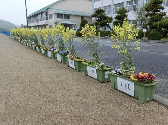 昨年度のなかよし班で植えたプランターの花,例年になくとても長持ちしています。雨に濡れて一段と華やかに見えました。毎朝6年生の水やりのおかげです。このまま,花が終わるまで咲かせてあげたいなと考えています。