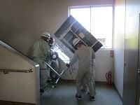 はじめに,職員室のストーブのほこりなどを取り除きながら点検をしていただきました。