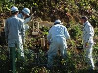 その次は,南側法面の草刈りを想定した足場づくりをしました。これは,機動班さんが自ら考えて作業をしてくださいました。学校業務機動班の方はそれぞれ専門の技能をおもちですが,アイディアもあります。みなさんが学校のために知恵を絞って動いてくださるので助かっています。