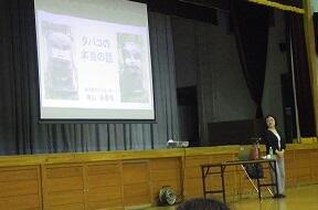 中でも印象的だったのは,「タバコは毒ガス」というフレーズです。どんな有害物質が含まれていて,吸い続けると将来どうなるのか等,クイズや衝撃的な写真もあり,生徒たちもしっかり学ぶことができました。