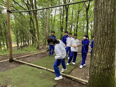 6月27日(火)1年生が冒険活動教室に出かけました。午前中、雨が降ってしまい予定していた登山を中止し、雨天時のプログラム(アリーナでミニ運動会やドッジボール大会)を実施しました。