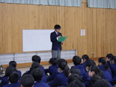 生徒指導主事からは冬休みの生活についての注意点、学習指導主任からは冬休み中の自主学習についてのアドバイスがありました。