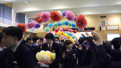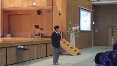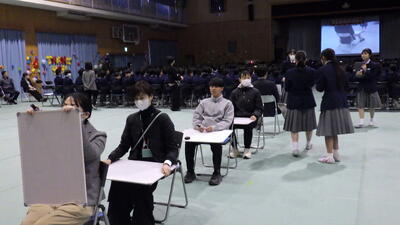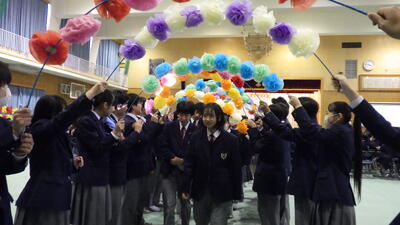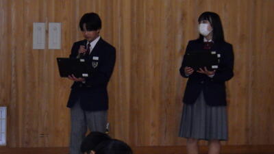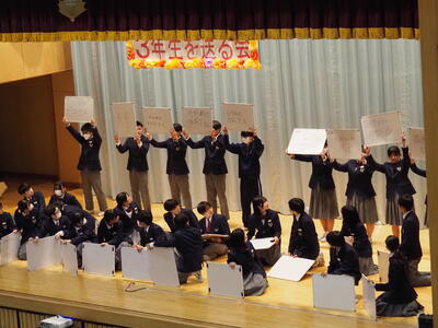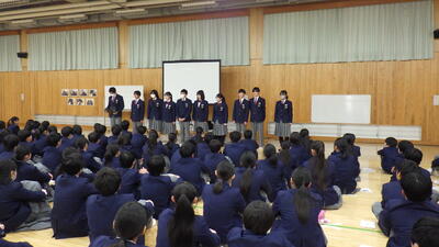 本日(2月19日)午後、全校生徒が体育館に集まり、3年生を送る会を行いました。