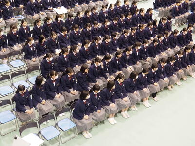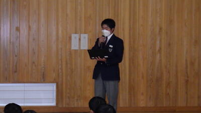 冬休みが明けました。全校生徒は登校後早々に体育館に集合し、冬休み明け全校朝会を行いました。