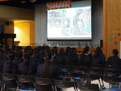本日5校時に全校生徒が体育館に集まり、冬季休業前全校集会を行いました。