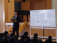 3月8日(金)、同窓会長・副会長をお招きし同窓会入会式を行い、令和5年度卒業生184名が歴史ある旭中学校同窓会に入会しました。同窓会長からご挨拶をいただき、入会への気持ちを新たにしました。新会員代表の挨拶、各クラス代表者の紹介も行いました。