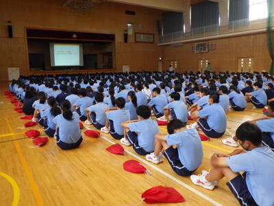 9月13日、全校朝会で夏休み中に行われた県総合体育大会や各種大会、コンクール等の表彰、また先日の新人宇河大会の表彰を行いました。表彰された生徒、頑張ったけれど表彰に届かなかった生徒、すべての生徒に拍手を送りたいと思います。
