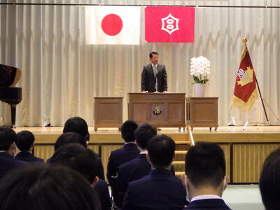 5月10日(水)、生徒会朝会を体育館で行いました。生徒会長から生徒総会についての説明があり、生徒会の一員として臨む総会の意義を再確認しました。また、体育祭実行委員と各色の団長から、体育祭にかけるそれぞれの熱い思い、意気込みの発表がありました。