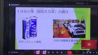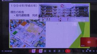 校長先生がテレビで,学校の歴史をお話ししてくださいました。