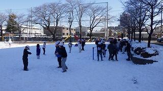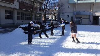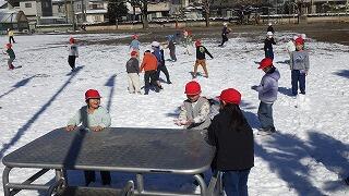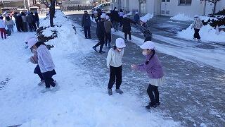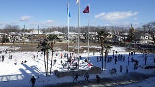 校庭には,先日の雪が残っています。