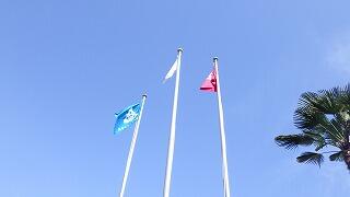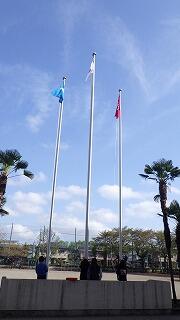 青空に国旗が映えます。