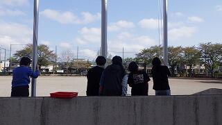 毎朝,6年生が国旗を掲げてくれます。