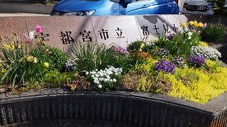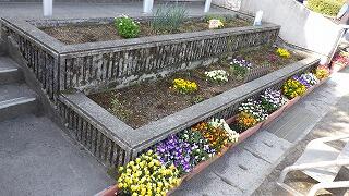 正門前の花壇も,お花でいっぱいです。