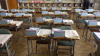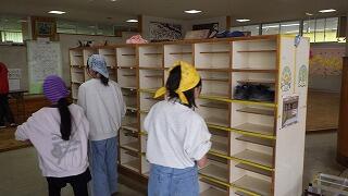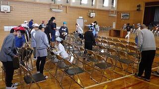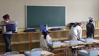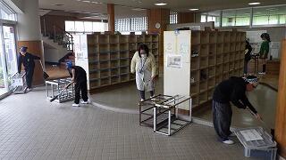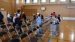 1~4年生と6年生が帰ったあと,5年生が卒業式の準備に取り掛かりました。