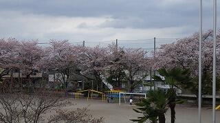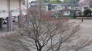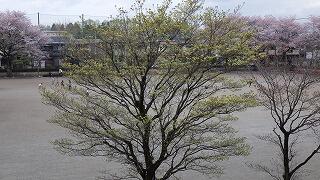校庭では桜と・・・。