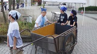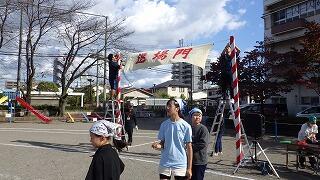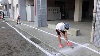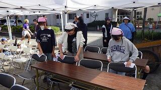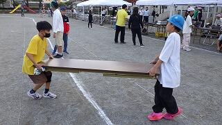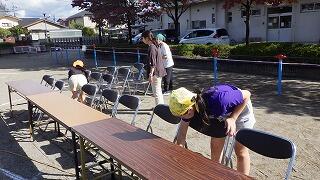 6年生と教職員で運動会の準備です。