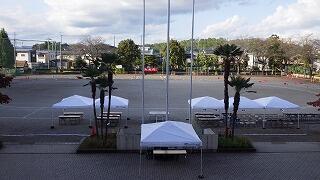 グラウンドの整備や本部周辺のテントの設営・・・。