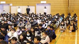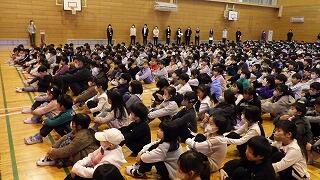 最後に校歌合唱。体育館に元気な歌声が響き渡りました。