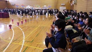 明日の卒業式を前に,全校生で6年生を見送りました。