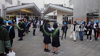 宮の原中学校の皆さんがあいさつ運動に来てくれました。