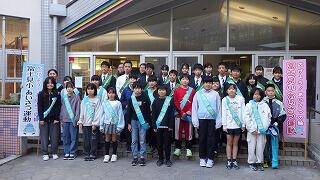 本校の小さな親切委員会も一緒にあいさつ運動です。