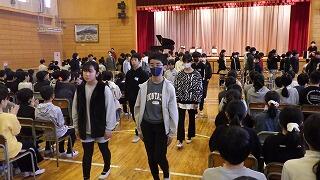 卒業式に参加する4,5,6年生全体での練習です。