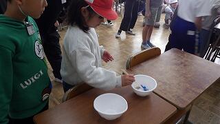 今日の1食分にま(大豆)・ご(ごま)・わ(わかめ等の海藻類)・や(野菜)・さ(魚類)・し(しいたけ等のきのこ類)・い(いも類)を全部取り入れました。どちらかと言えば児童が苦手な食材の組合せですが,バランスよく食事を摂ることを意識する機会になったかと思います。11月「お弁当の日」のテーマは,「まごわやさしいを使ったお弁当を作ってみよう!」なので,どれか一つでも工夫して,お弁当に取り入れてほしいと思います。