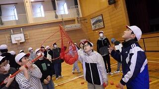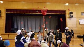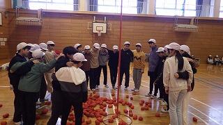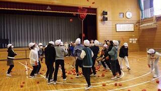 冬休み前のひととき,6年生が児童の発案で,玉入れ大会を実施しました。