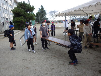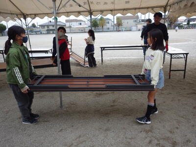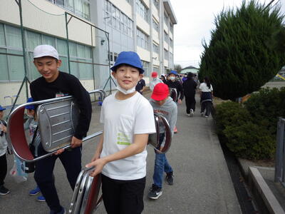 11月5日(水)の5時間目に5・6年生による運動会前日準備が行われました。机やいすを運んだり、ラインを引いたりするなどして児童は一生懸命取り組んでいました。運動会の実施時は快晴になることを願っています。
